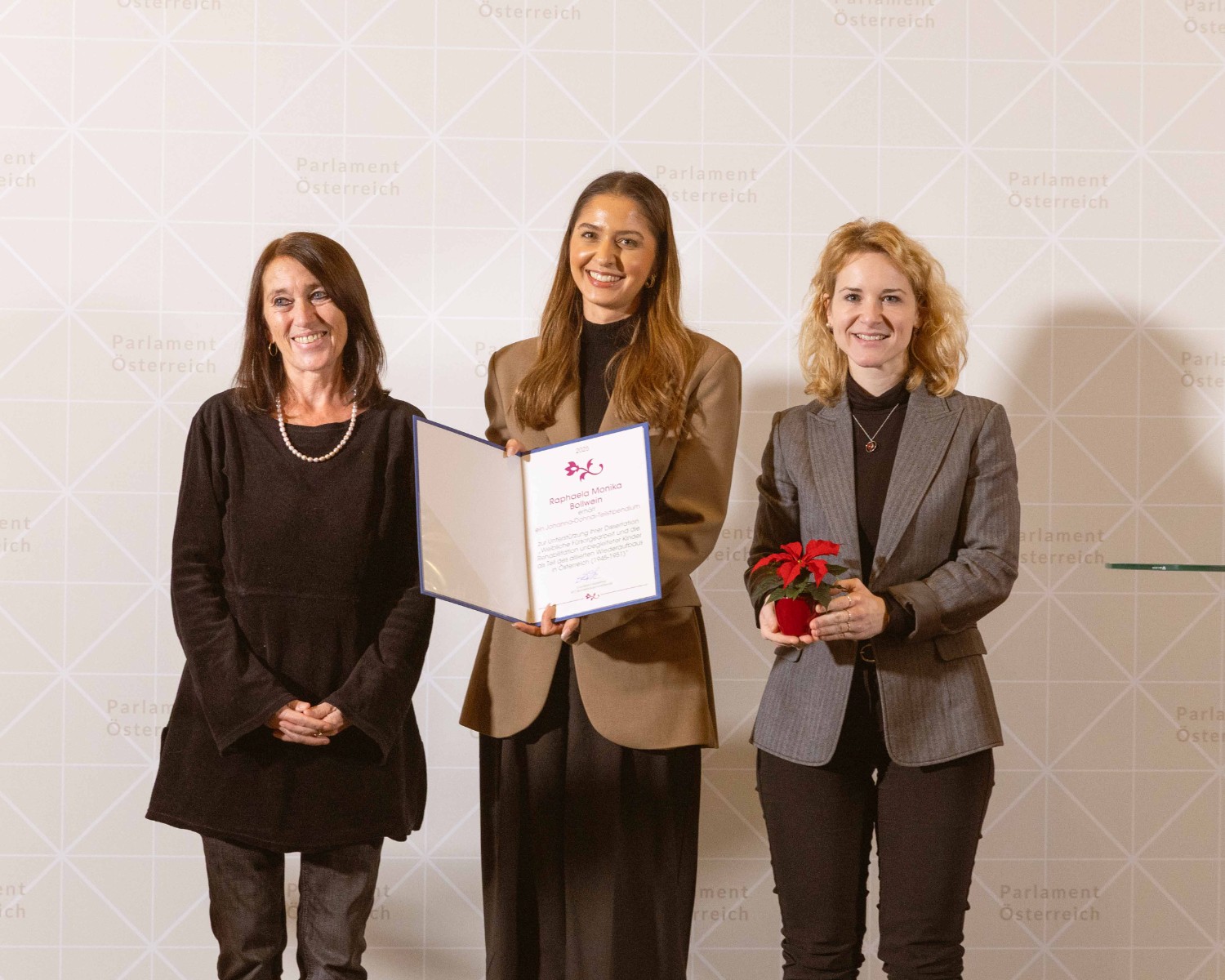Im Palais Epstein wurden am 1.12.2025, die Johanna-Dohnal-Preise 2025 vergeben. Die Preisträgerinnen Raphaela Monika Bollwein, Elif Gül, Diana Köhler, Nora Lehner und Magdalena Übleis-Lang wurden im Rahmen einer feierlichen Verleihung ausgezeichnet, die in Kooperation der SPÖ-Frauen, des SPÖ-Parlamentsklubs und des Johanna-Dohnal-Archivs stattfand. „Die prämierten Arbeiten decken ein breites wissenschaftliches Feld ab: historische Frauen- und Geschlechterforschung, Medizin, Technik, Selbstbestimmung, reproduktive Rechte und den Schutz vor Gewalt. Frauenpolitische Fortschritte sind hart erkämpft und brauchen gesellschaftlichen Diskurs und Auseinandersetzung“, so SPÖ-Frauenvorsitzende und Bundesministerin für Frauen, Wissenschaft und Forschung Eva-Maria Holzleitner, die den Preisträgerinnen gratulierte. Die Preisverleihung fand im Zeitraum der Internationalen Kampagne 16 Tage gegen Gewalt vom 25. November bis zum 10. Dezember statt. „Mit dem Nationalen Aktionsplan setzen wir klare Standards für sichere Hochschulen: einheitlicher Code of Conduct, verbindliche Gewaltschutzkonzepte, gleiches Schutzniveau für alle Studierenden und Mitarbeiter*innen, niederschwellige Hilfe für Betroffene, mehr Prävention sowie klare Zuständigkeiten“, so Holzleitner.